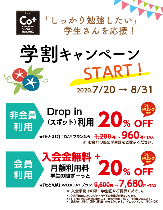 好評につき、お勉強目的の学生さん応援「学割キャンペーン」を継続中です!