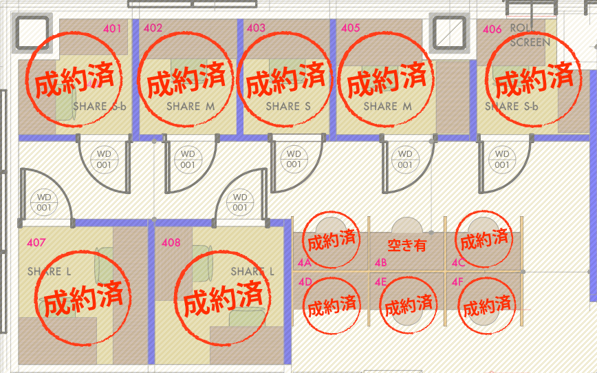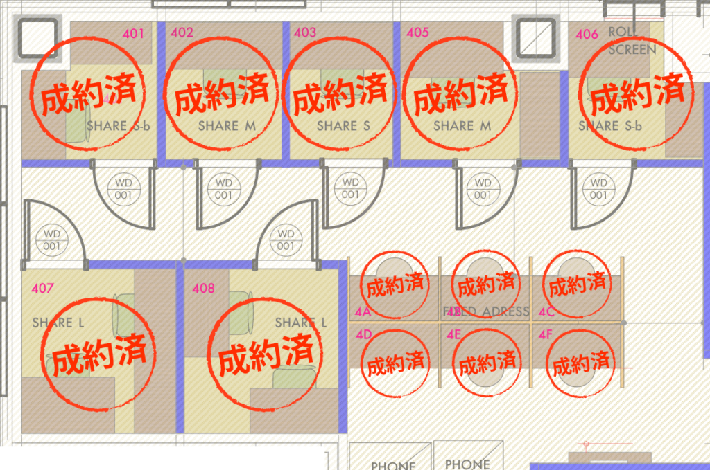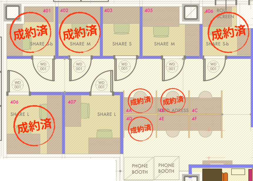 *:個室オフィス・半個室オフィスの空き状況は随時変動いたしますので、お電話またはメールフォームからお問い合わせください。
