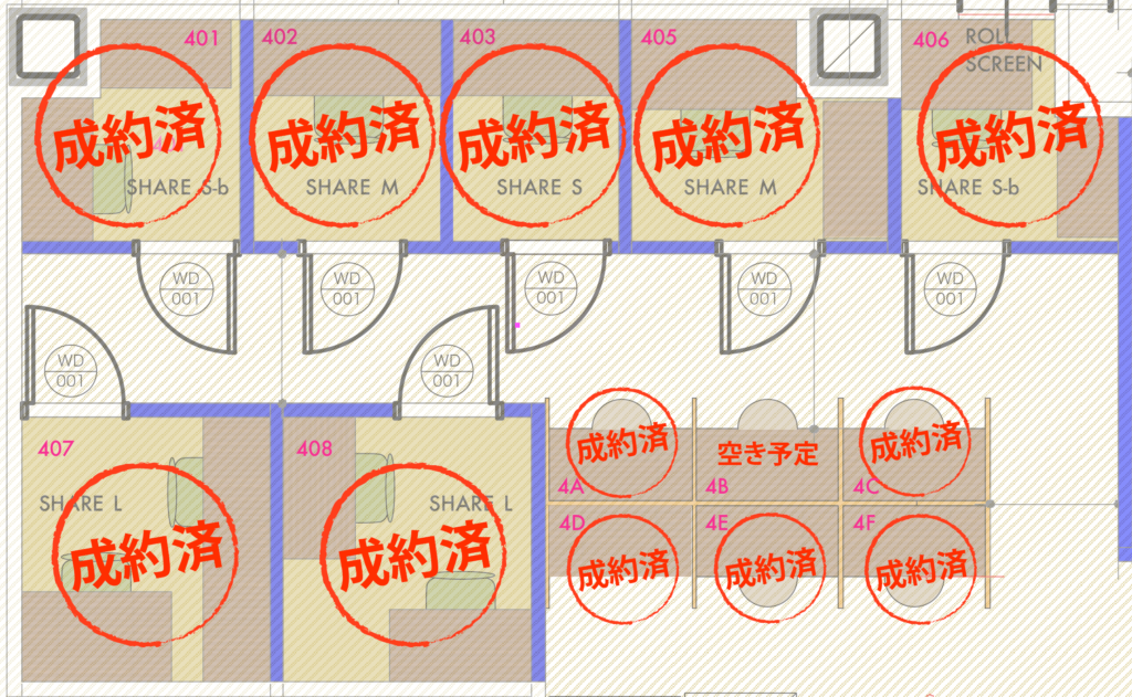 レンタルオフィスエリアについて、ご希望の個室・半個室に空きが無い場合、キャンセル待ちを承っております。